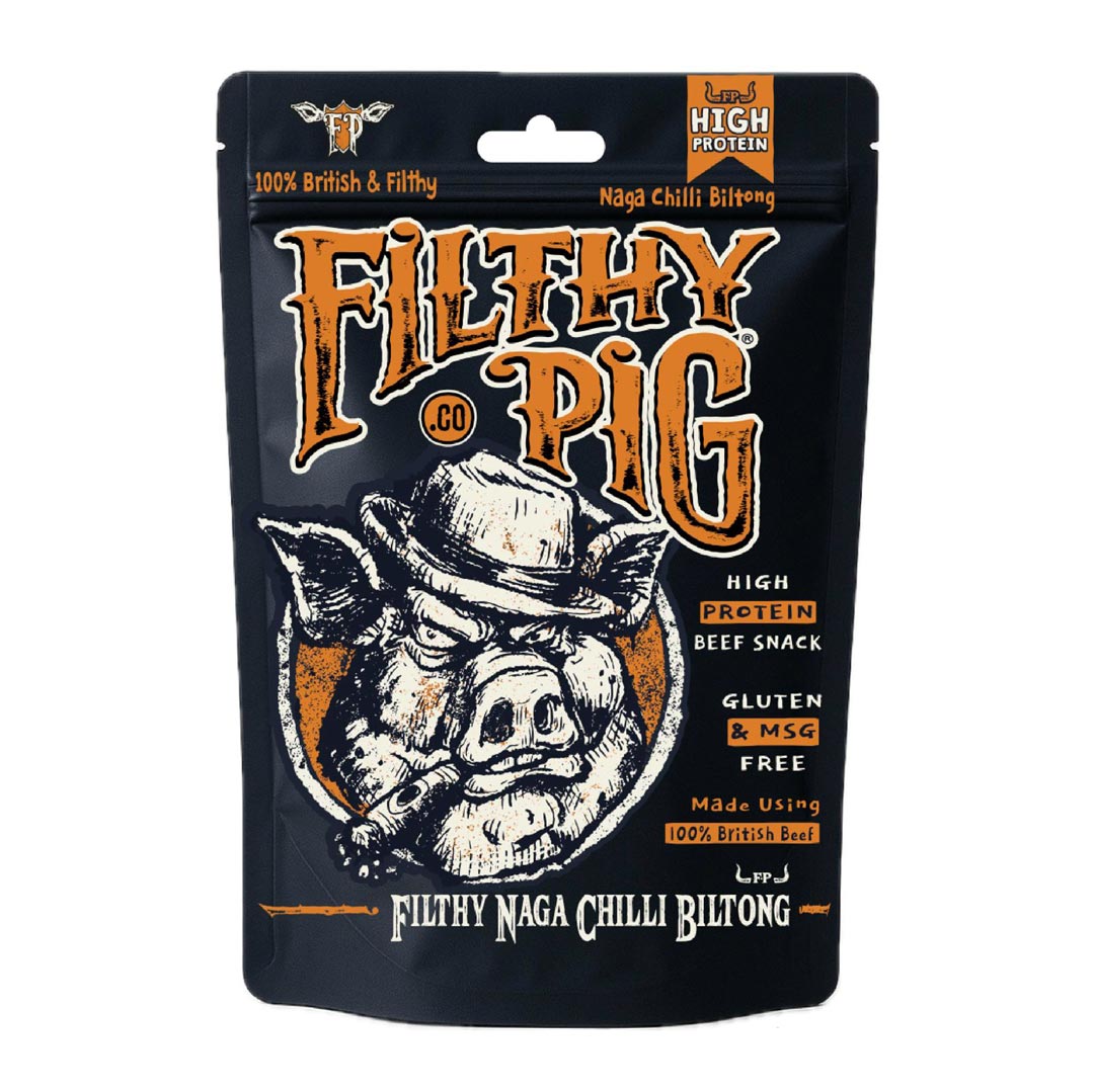 Filthy Pig Naga Chilli Biltong is not here to mess about. Air-dried British beef forms the base, with naga chilli bringing an intense, lingering heat that builds with every bite.